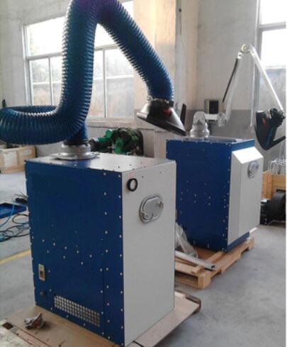 焊煙除塵器通過風(fēng)機(jī)引力作用,焊煙廢氣經(jīng)萬向吸塵罩吸入設(shè)備進(jìn)風(fēng)口,設(shè)備進(jìn)風(fēng)口處設(shè)有阻火器,火花經(jīng)阻火器被阻留,煙塵氣體進(jìn)入沉降室,利用重力與上行氣流,首先將粗粒塵直接降至灰斗,微粒煙塵被濾芯捕集在外表面,潔凈氣體經(jīng)濾芯過濾凈化后,由濾芯中心流入潔凈室,潔凈空氣又經(jīng)活性碳過濾器吸附進(jìn)一步凈化后經(jīng)出風(fēng)口達(dá)標(biāo)排出。