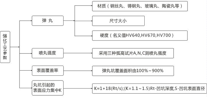 噴丸強化三要素分為:1、噴丸強化設備及其附件,2、介質:各種類型的彈丸,3、工藝:噴丸強化參數、與疲勞強度的關系;